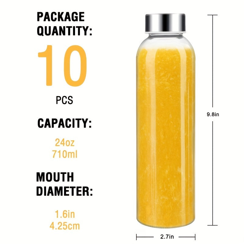 Clear Glass Juice Bottles 10-Pack 18oz – Leak-Proof Stainless Lid